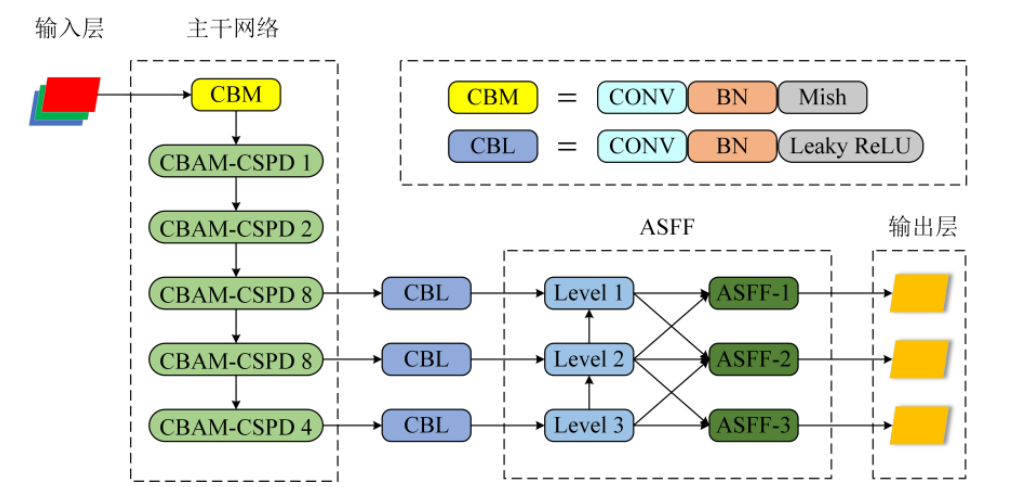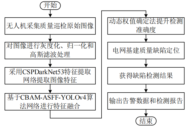Figure 2 Intelligent detection method flow of power grid infrastructure quality based on CBAM-ASFF-YOLOv4